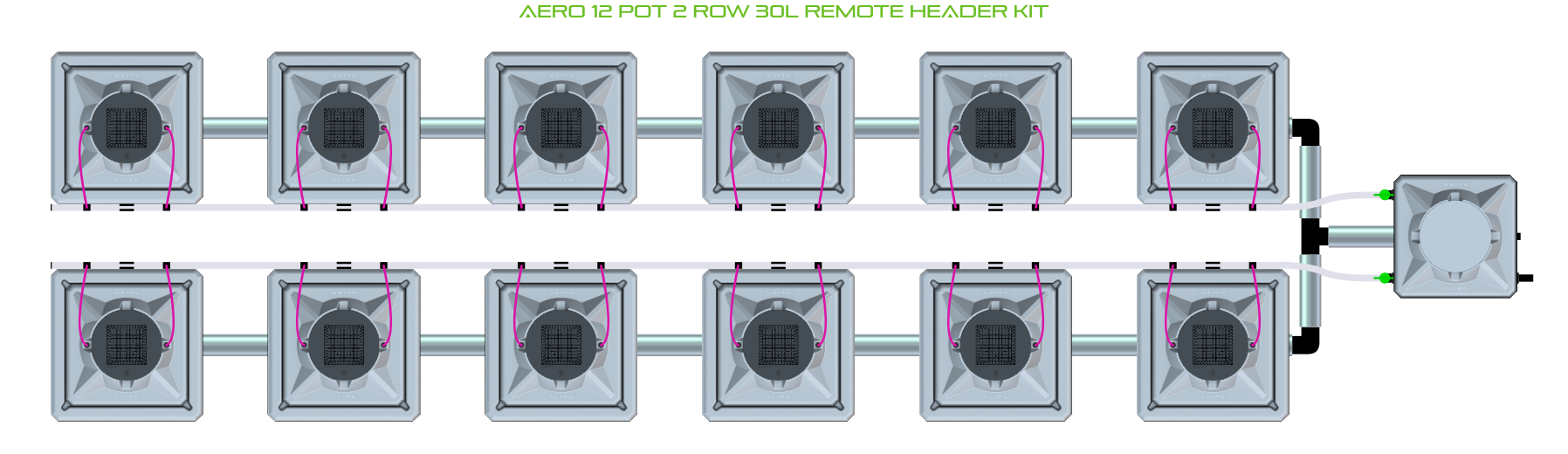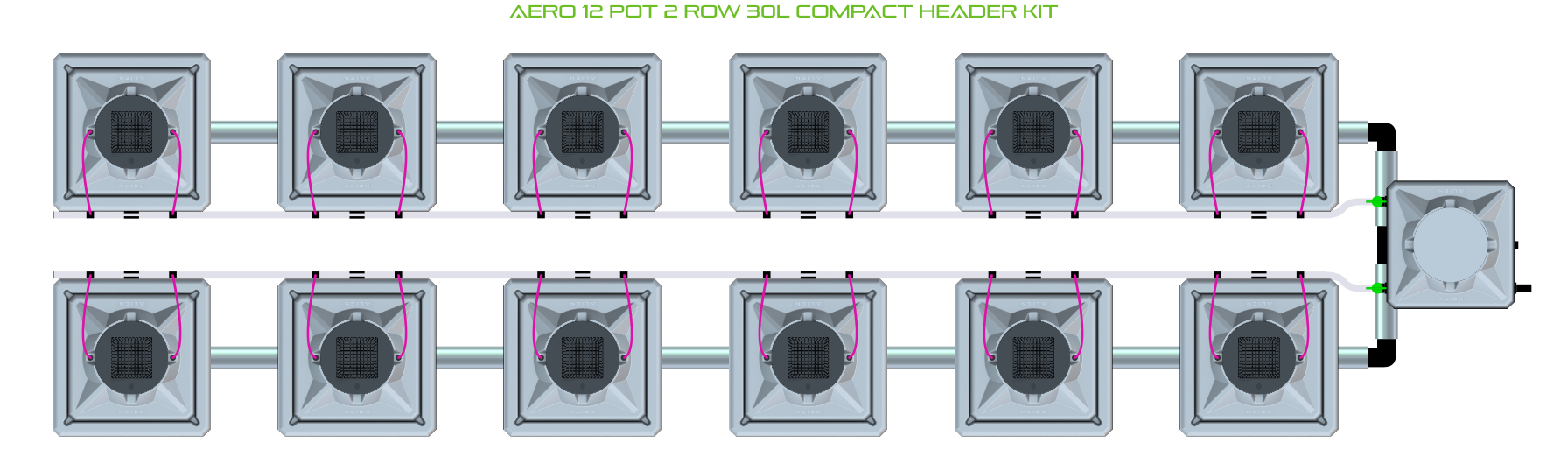 The ALIEN AERO 12 Pot 2 Row Kit is available in 2 pot sizes and 2 header configurations. Easy to configure and assemble with advanced features and setup options, grow 12 plants to perfection aeroponically with this ALIEN AERO Kit!
