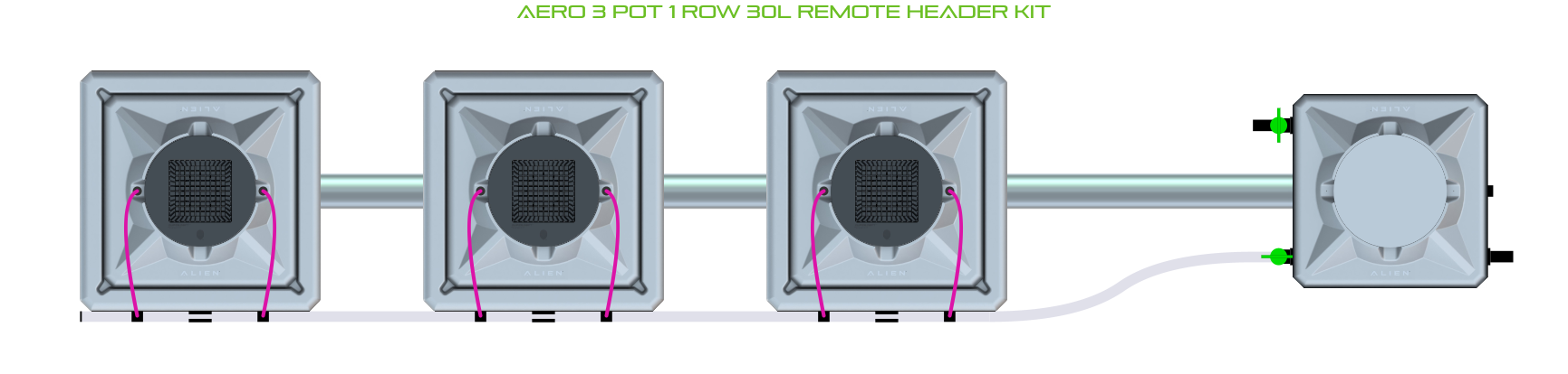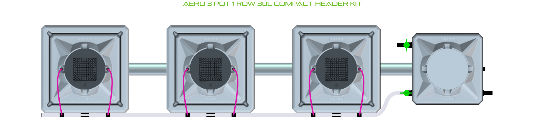 The ALIEN AERO 3 Pot 1 Row Kit is available in 2 pot sizes and 2 header configurations. Easy to configure and assemble with advanced features and setup options, grow 3 plants to perfection aeroponically with this ALIEN AERO Kit!
