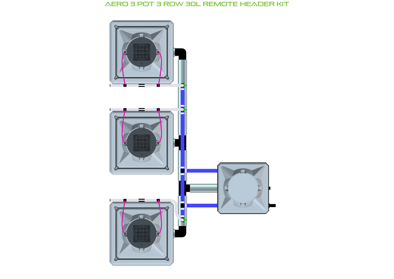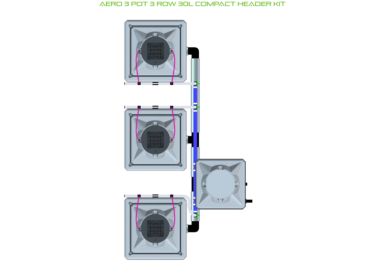 The ALIEN AERO 3 Pot 3 Row Kit is available in 2 pot sizes and 2 header configurations. Easy to configure and assemble with advanced features and setup options, grow 3 plants to perfection aeroponically with this ALIEN AERO Kit!