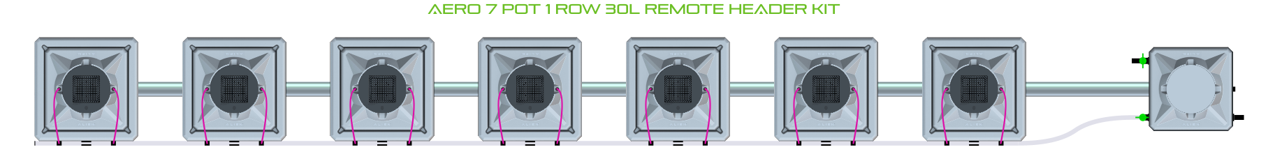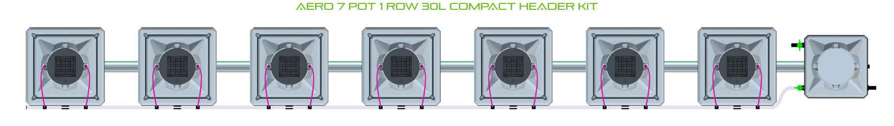 The ALIEN AERO 7 Pot 1 Row Kit is available in 2 pot sizes and 2 header configurations. Easy to configure and assemble with advanced features and setup options, grow 7 plants to perfection aeroponically with this ALIEN AERO Kit!