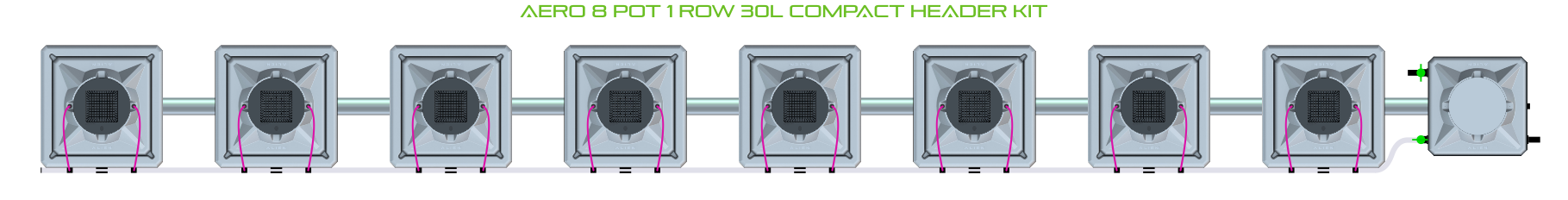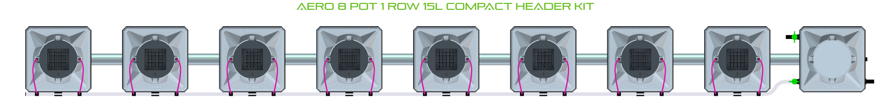 The ALIEN AERO 8 Pot 1 Row Kit is available in 2 pot sizes and 2 header configurations. Easy to configure and assemble with advanced features and setup options, grow 8 plants to perfection aeroponically with this ALIEN AERO Kit!