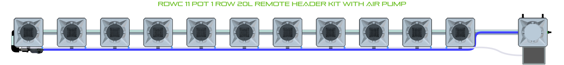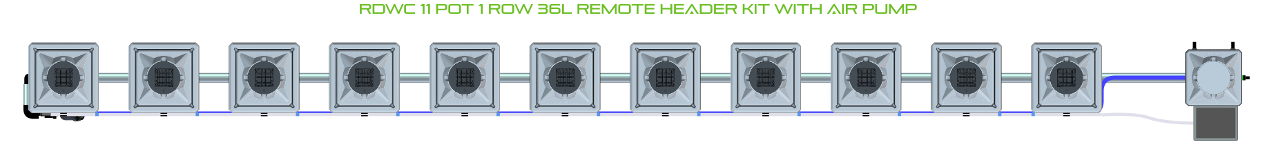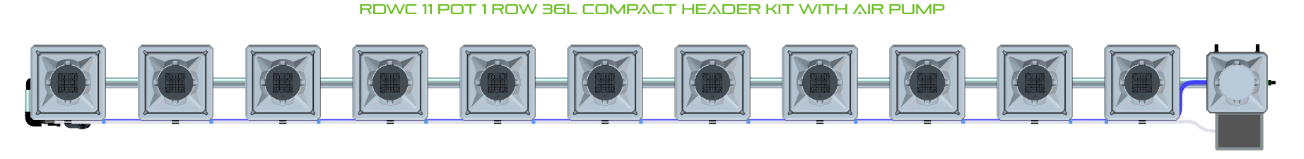 The ALIEN RDWC 11 Pot 1 Row Kit is available in 2 pot sizes and 2 header configurations, with or without an air pump (required for operation). Easy to configure and assemble with advanced features and setup options, grow 11 plants to perfection in recirculating deep water culture with this ALIEN RDWC Kit!