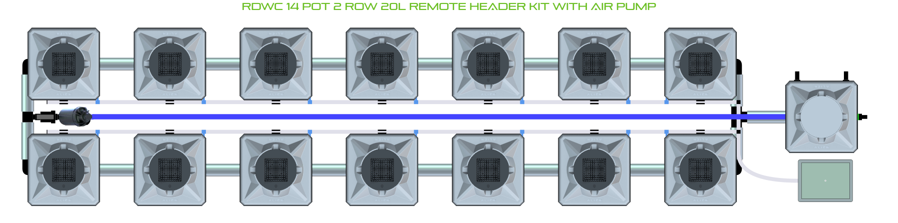 The ALIEN RDWC 14 Pot 2 Row Kit is available in 2 pot sizes and 2 header configurations, with or without an air pump (required for operation). Easy to configure and assemble with advanced features and setup options, grow 14 plants to perfection in recirculating deep water culture with this ALIEN RDWC Kit!
