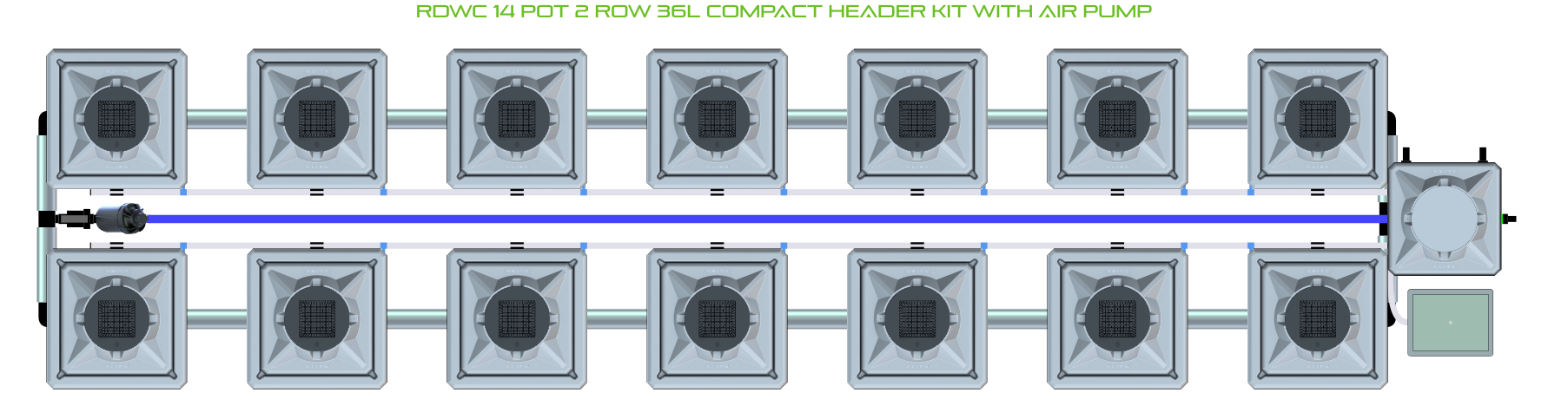 ?This Configurator is locked to Kits; Click here for the full Configurator?Multi-row RDWC kits with only one pot per row are only available in the 36L pot size as the 20L pots don't allow enough space for the filter.?Multi-row RDWC kits with only one pot per row are only available with a remote header (a compact header can't fit)?Header position must be 'middle' for 1-row V-SYSTEM kits with more than 10 pots, and 'end' for 1 pot kits.