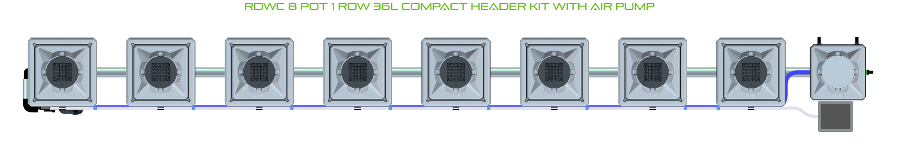 The ALIEN RDWC 8 Pot 1 Row Kit is available in 2 pot sizes and 2 header configurations, with or without an air pump (required for operation). Easy to configure and assemble with advanced features and setup options, grow 8 plants to perfection in recirculating deep water culture with this ALIEN RDWC Kit!