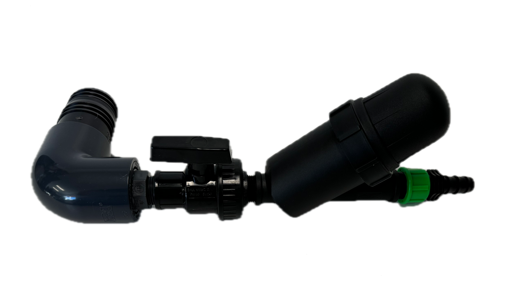 A 50mm x 3/4&auot; Tee, 3/4" ball valve and 3/4" filter for 1-row RDWC systems.