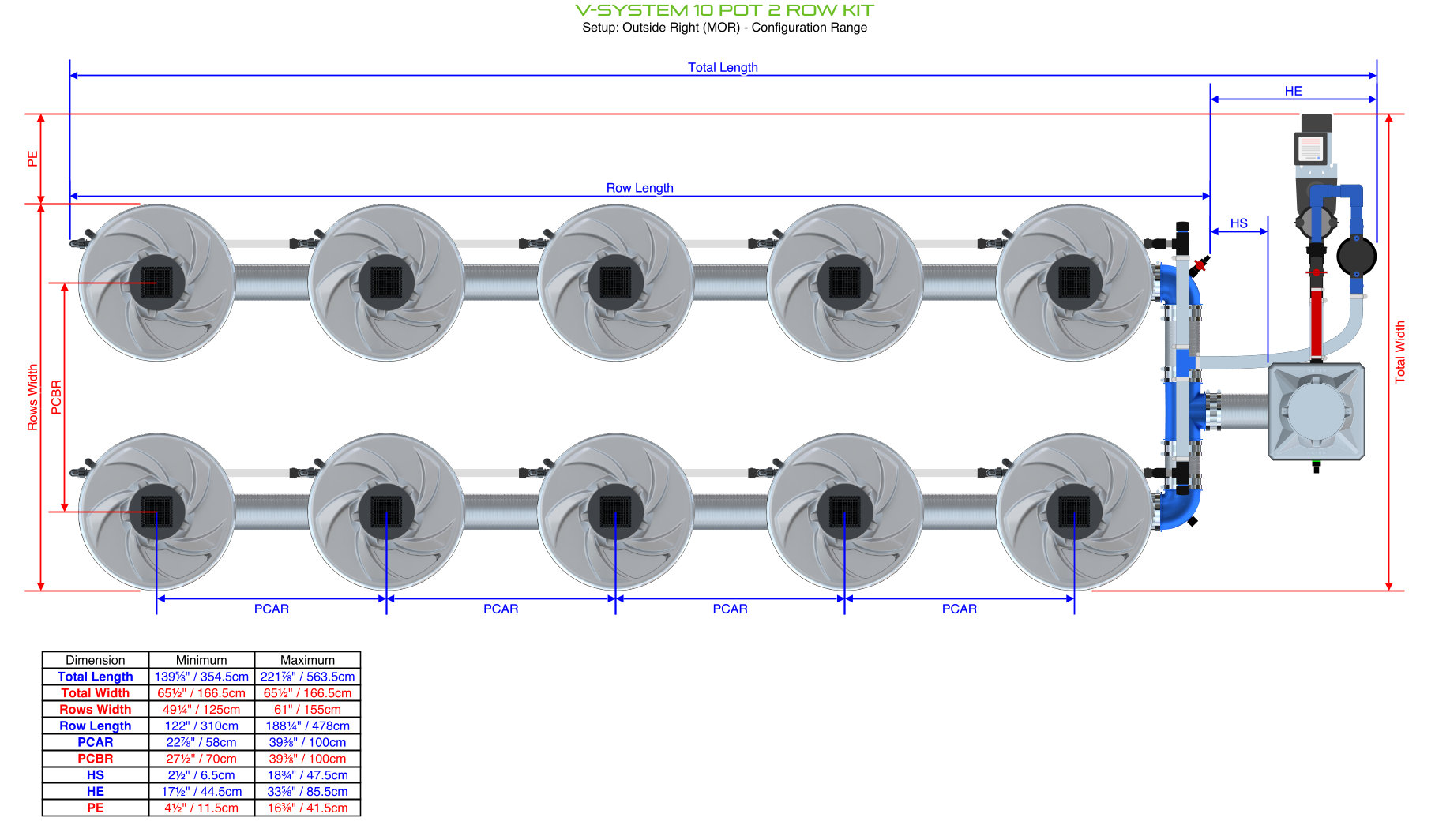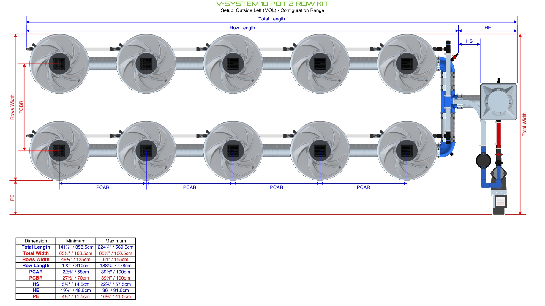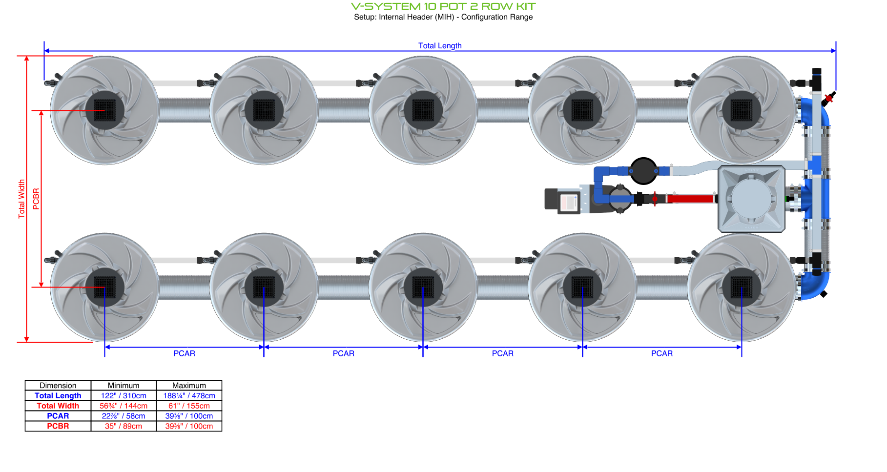 ?This Configurator is locked to Kits; Click here for the full Configurator?Multi-row RDWC kits with only one pot per row are only available in the 36L pot size as the 20L pots don't allow enough space for the filter.?Multi-row RDWC kits with only one pot per row are only available with a remote header (a compact header can't fit)?Header position must be 'middle' for 1-row V-SYSTEM kits with more than 10 pots, and 'end' for 1 pot kits.