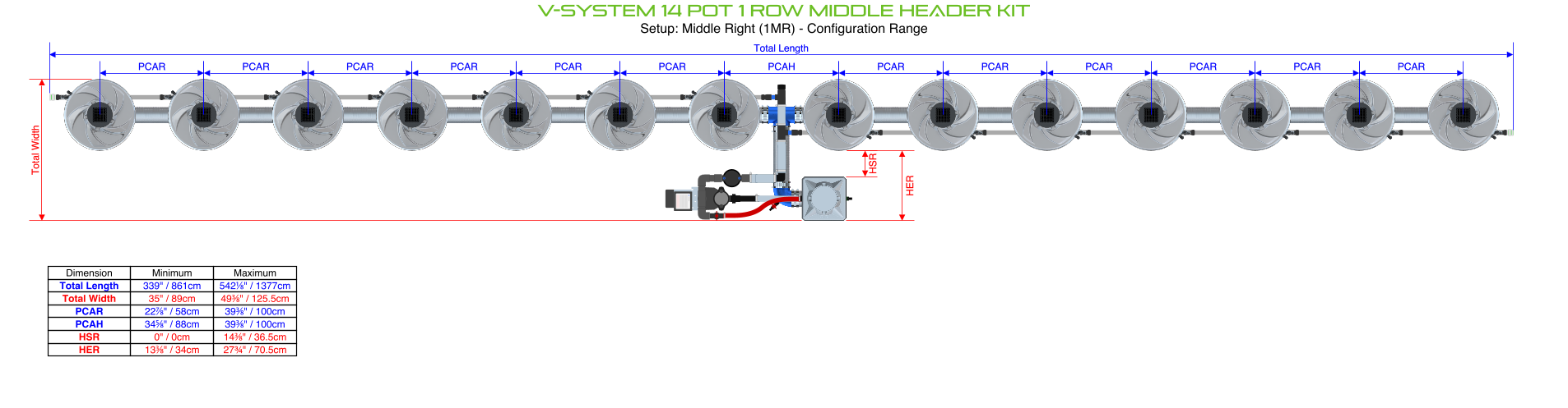 ?This Configurator is locked to Kits; Click here for the full Configurator?Multi-row RDWC kits with only one pot per row are only available in the 36L pot size as the 20L pots don't allow enough space for the filter.?Multi-row RDWC kits with only one pot per row are only available with a remote header (a compact header can't fit)?Header position must be 'middle' for 1-row V-SYSTEM kits with more than 10 pots, and 'end' for 1 pot kits.
