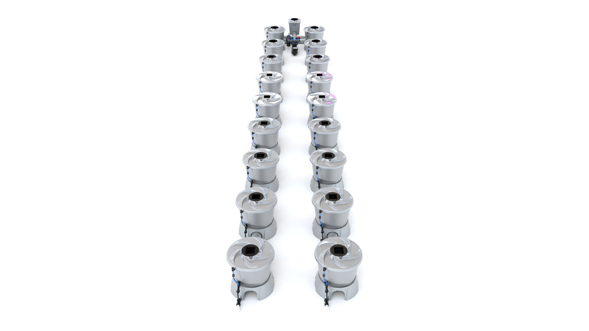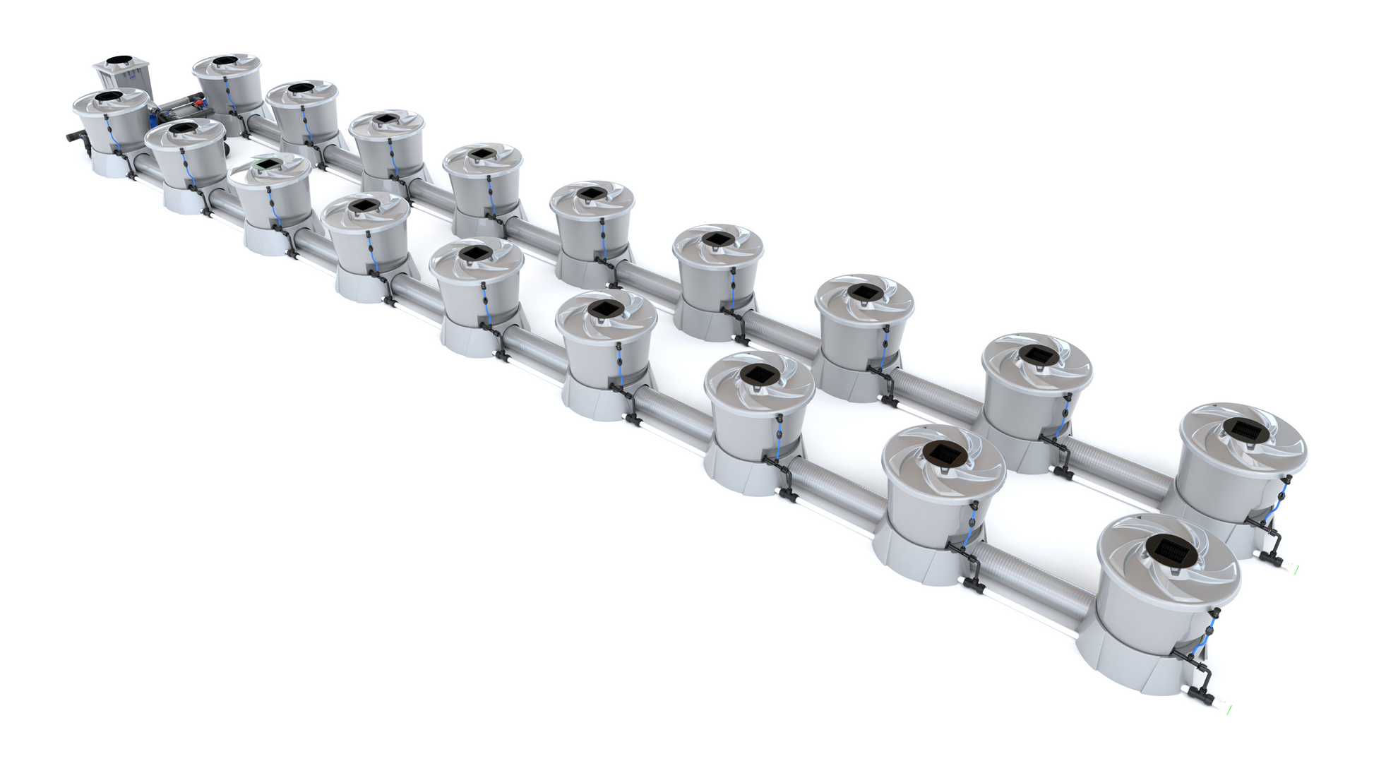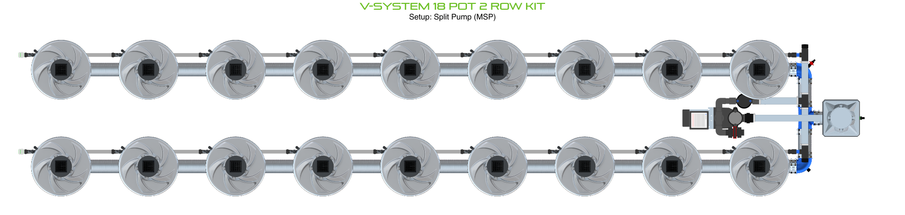 The ALIEN V-SYSTEM 18 Pot 2 Row Kit has 4 layout options for header and pump placement to best fit your grow area. The header and pump can be placed outside a grow tent / room, or made as compact as possible. Easy to configure and assemble with advanced features and setup options, grow 18 plants to perfection in the ultimate recirculating deep water culture with this ALIEN V-SYSTEM Kit!