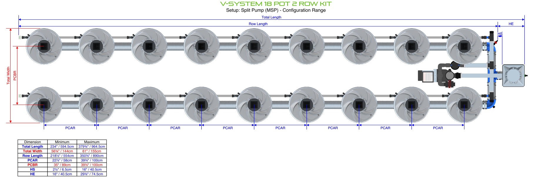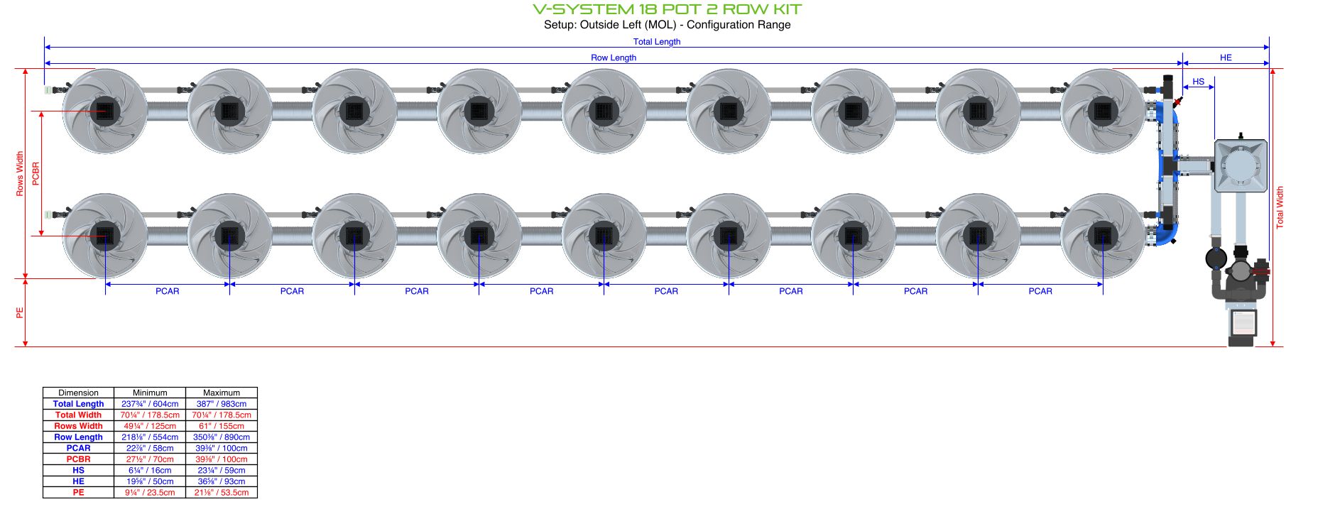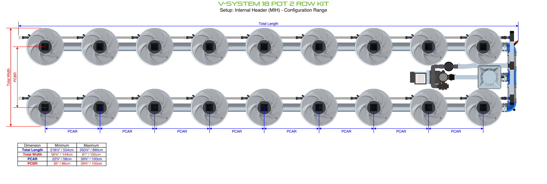 ?This Configurator is locked to Kits; Click here for the full Configurator?Multi-row RDWC kits with only one pot per row are only available in the 36L pot size as the 20L pots don't allow enough space for the filter.?Multi-row RDWC kits with only one pot per row are only available with a remote header (a compact header can't fit)?Header position must be 'middle' for 1-row V-SYSTEM kits with more than 10 pots, and 'end' for 1 pot kits.