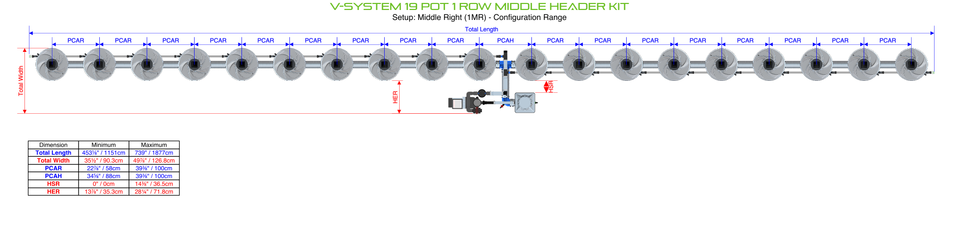 ?This Configurator is locked to Kits; Click here for the full Configurator?Multi-row RDWC kits with only one pot per row are only available in the 36L pot size as the 20L pots don't allow enough space for the filter.?Multi-row RDWC kits with only one pot per row are only available with a remote header (a compact header can't fit)?Header position must be 'middle' for 1-row V-SYSTEM kits with more than 10 pots, and 'end' for 1 pot kits.