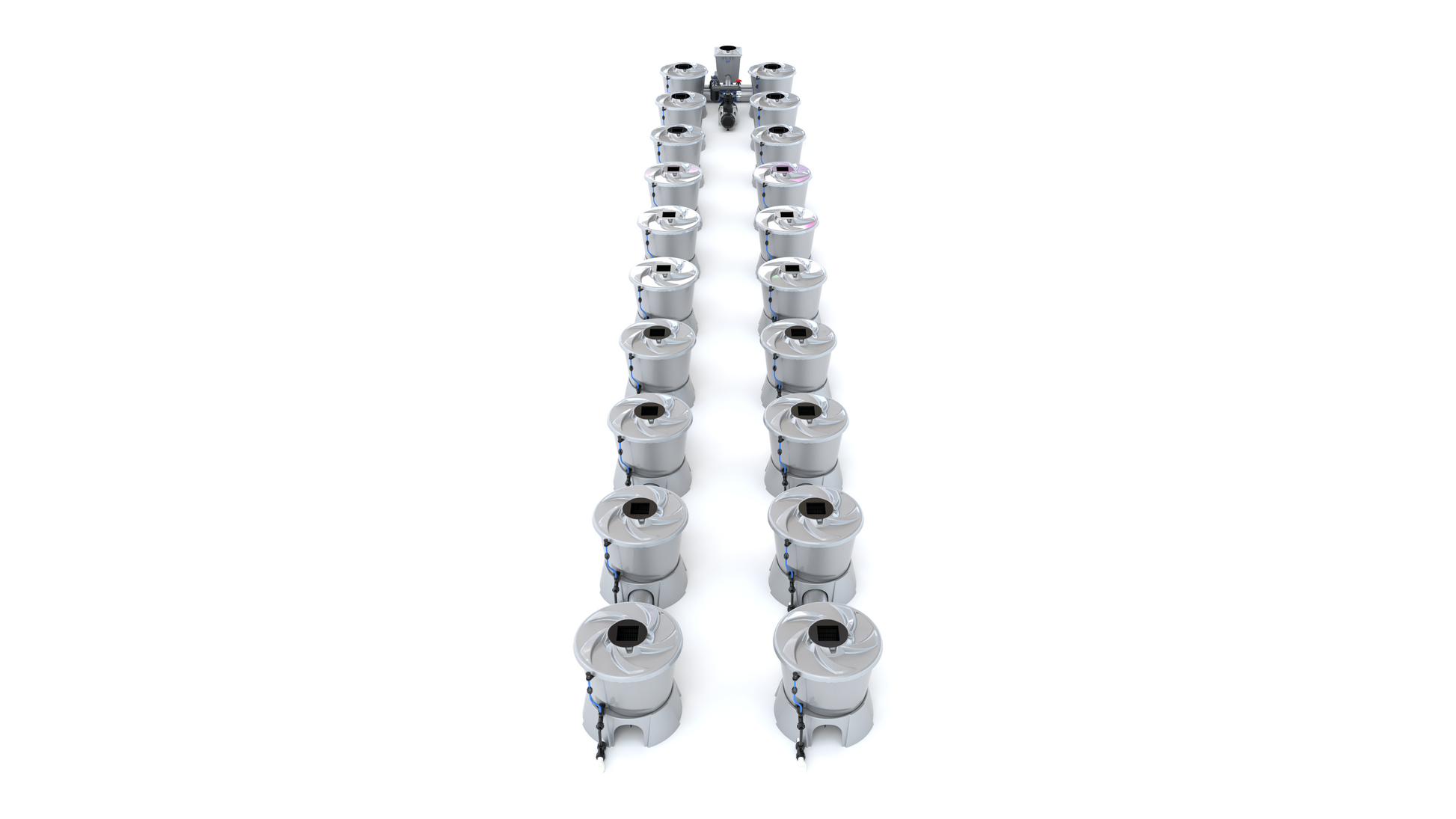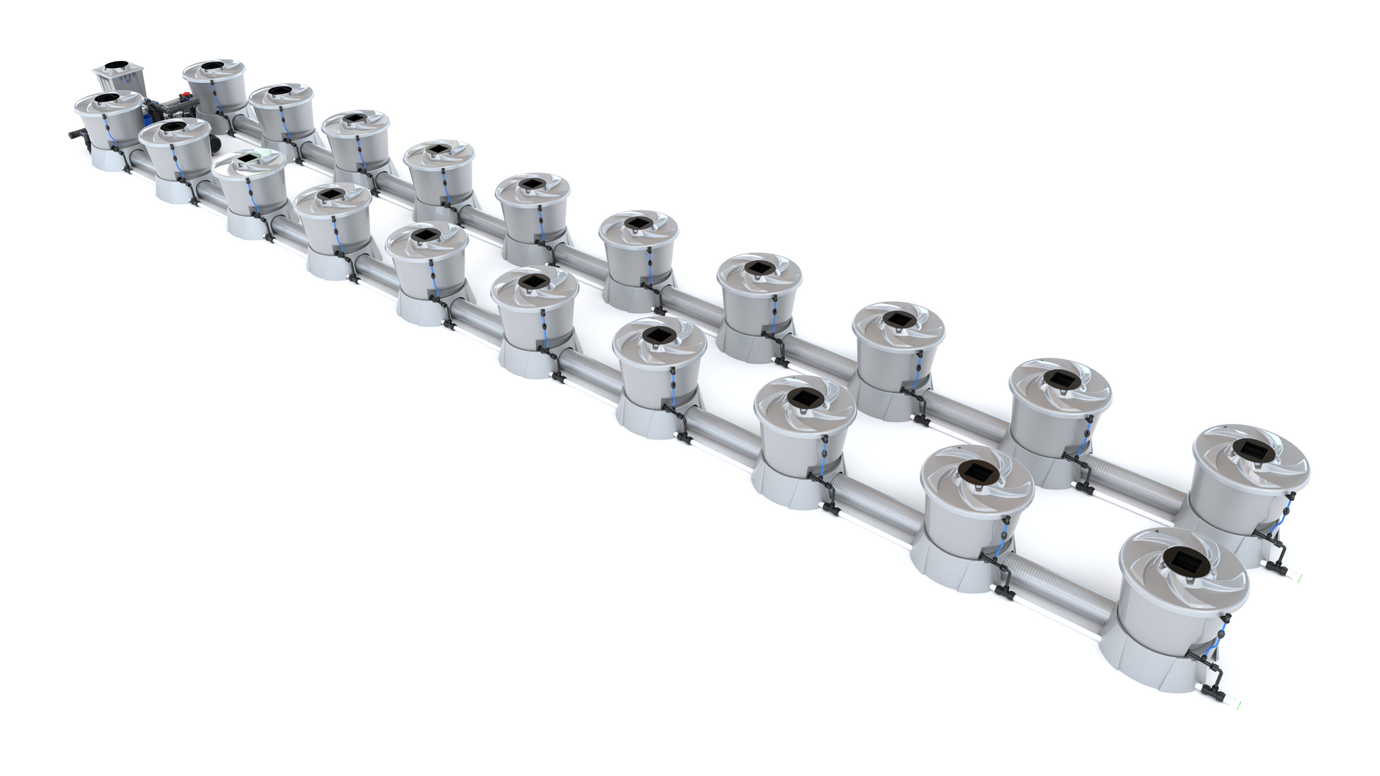 The ALIEN V-SYSTEM 20 Pot 2 Row Kit has 4 layout options for header and pump placement to best fit your grow area. The header and pump can be placed outside a grow tent / room, or made as compact as possible. Easy to configure and assemble with advanced features and setup options, grow 20 plants to perfection in the ultimate recirculating deep water culture with this ALIEN V-SYSTEM Kit!