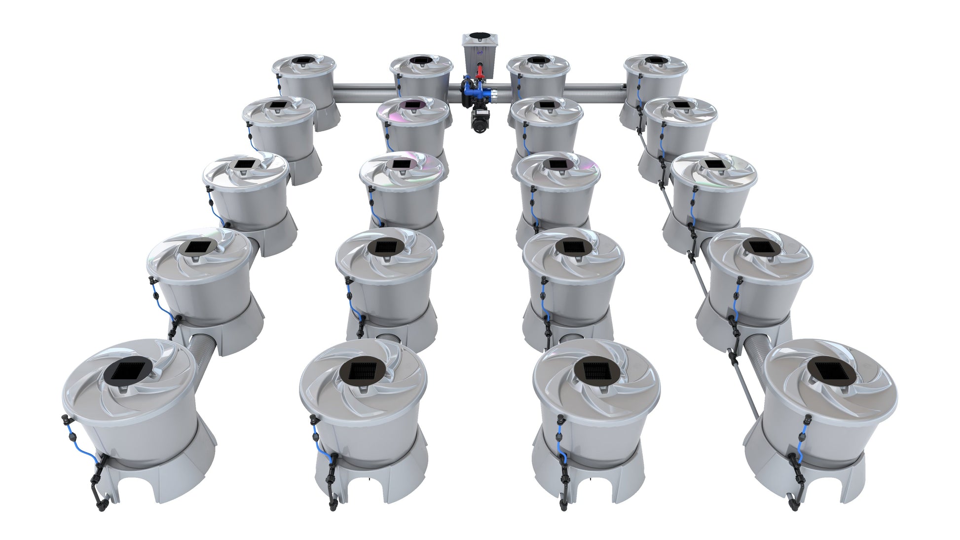 The ALIEN V-SYSTEM 20 Pot 4 Row Kit has 4 layout options for header and pump placement to best fit your grow area. The header and pump can be placed outside a grow tent / room, or made as compact as possible. Easy to configure and assemble with advanced features and setup options including the ability to create an aisle in the middle of rows for complete plant access, grow 20 plants to perfection in the ultimate recirculating deep water culture with this ALIEN V-SYSTEM Kit!