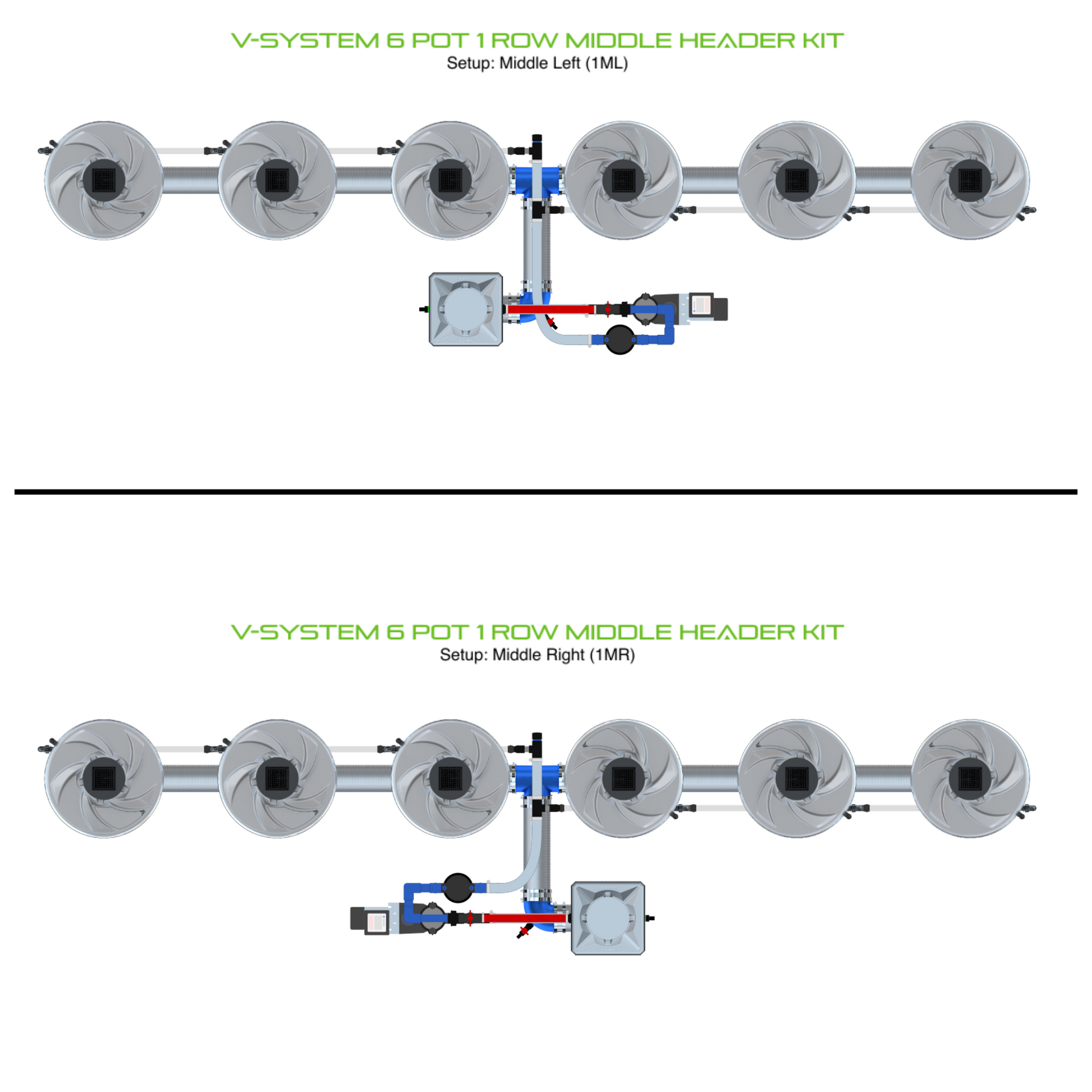 ?This Configurator is locked to Kits; Click here for the full Configurator?Multi-row RDWC kits with only one pot per row are only available in the 36L pot size as the 20L pots don't allow enough space for the filter.?Multi-row RDWC kits with only one pot per row are only available with a remote header (a compact header can't fit)?Header position must be 'middle' for 1-row V-SYSTEM kits with more than 10 pots, and 'end' for 1 pot kits.